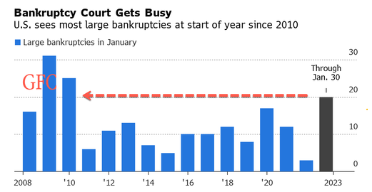 尽管一些投资者认为今年美国经济不会出现硬着陆,然而最近大公司破产案例的激增是一种不祥信号。据媒体的一项新数据显示,本月申请破产的美国大公司(负债至少5000万美元)超过20家,是2010年1月以来的最高月度水平。2010年1月,美国经济仍在全球金融危机的余波中蹒跚前行,当时有25家公司提交了破产申请。