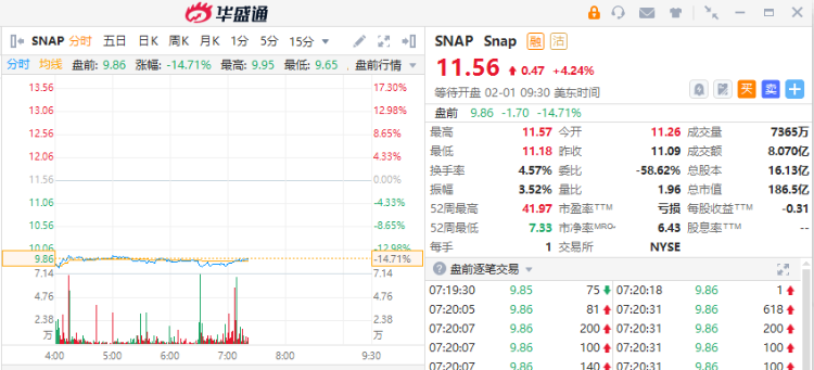 Snap盘前跌超14%,Q4营收零增长 ,1月营收同比下滑7%,远逊预期