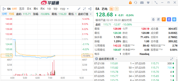 游戏开发商艺电盘前跌超10%,Q3业绩、Q4指引均逊预期