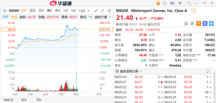 5、游戏开发商MSGM昨日大涨713.69%,盘前续涨超209%