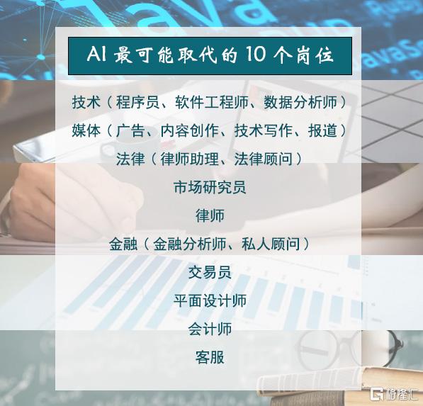 格隆汇2月3日丨自从去年11月发布以来,OpenAI的ChatGPT已经被用来写求职信、创作儿童读物、甚至帮助学生作弊。聊天机器人可能比想象的还要强大。谷歌发现,从理论上讲,如果ChatGPT来公司面试,谷歌会以初级程序员雇佣它。测试ChatGPT的亚马逊员工说,它在回答客户问题方面做得“非常好”,在制作培训文件方面“很棒”,在回答围绕企业战略的询问方面“非常强”。Business Insider根据专家意见整理出ChatGPT等AI应用最可能威胁的10个行业岗位: