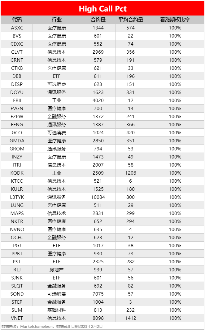 注:High Call Pct/High Put Pct是指相关期权标的当前看涨/看跌比例大小,该比值越高意味着该期权标的看涨/看跌的合约占比越高。