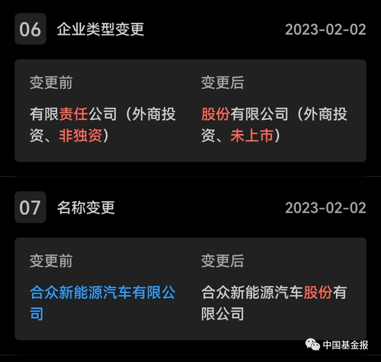 记者从哪吒汽车背后的合众汽车工商资料变更发现,近日该公司名称已经变更为合众新能源汽车股份有限公司,公司性质已从有限责任公司变更为股份有限公司。同时,合众汽车新增部分股东,多名主要人员发生变更。