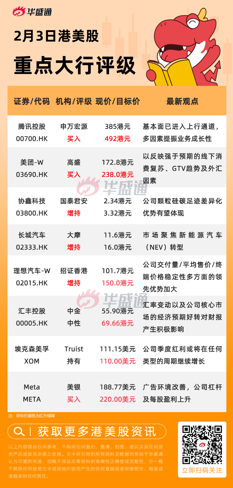 编者按:机构指腾讯基本面已进入上行通道,股价或升28%;国泰君安建议增持协鑫科技,目标价3.32港元;中信看好线下客流恢复带动运动品牌销售复苏,关注李宁、安踏>>