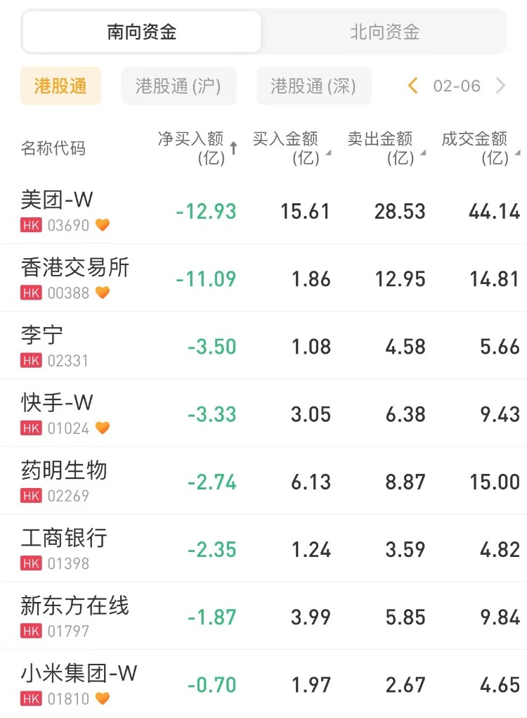 美团-W、香港交易所、李宁、快手-W分别遭净卖出12.93亿港元、11.09亿港元、3.5亿港元、3.33亿港元。