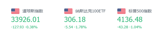 截至周一(2月6日)收盘,道指跌34.99点,跌幅为0.10%,报33891.02点;纳指跌119.50点,跌幅为1.00%,报11887.45点;标普500指数跌25.40点,跌幅为0.61%,报4111.08点。热门美股方面,寺库宣布将用ChatGPT技术改变奢侈品电商运营模式,收涨近125%,特斯拉逆市涨2.5%,3B家居 $BBBY 涨91%;英特尔跌4%,陆金所跌逾7%,爱奇艺跌逾6%,哔哩哔哩跌4%,法拉第未来回吐盘初涨幅跌26.6%。