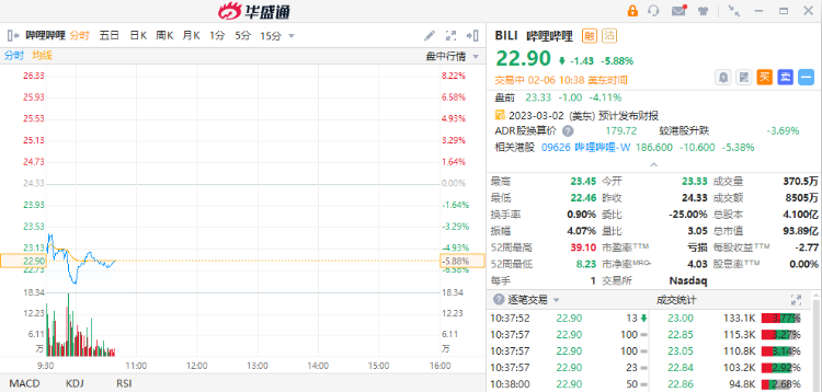 华盛资讯2月6日消息,热门中概股今日集体走低,截至发稿,爱奇艺跌近8%,哔哩哔哩跌近6%,拼多多跌超5%,新东方跌近5%,阿里巴巴、百度跌近3%。