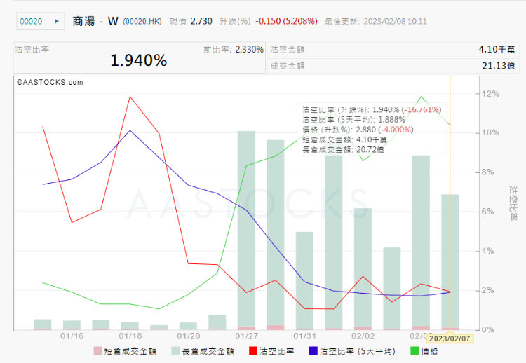 此外商汤2月7日沽空比率为1.94%,较前5日平均沽空比率1.88%有所上升,沽空金额0.41亿港元。