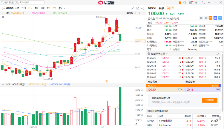但另一方面,谷歌却因新推的“Bard”犯了事实性错误,股价暴跌近8%。“Bard”是谷歌对标ChatGPT推出的竞品,但显然相较于后者,有些出师不利。