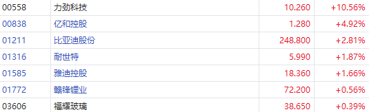 2月9日,特斯拉1月在中国交付数据表现良好,美股特斯拉一个月翻倍重回200美元,相关概念股拉升,截至发稿,力劲科技(00558)涨超10%,亿和控股(00838)涨4.9%,比亚迪股份(01211)、雅迪控股(01585)、福耀玻璃(03606)等股拉升跟涨。西南证券表示,随着节后各地陆续推出鼓励购买电车的政策,预计2月新能源车市场景气度将回升,近期建议关注特斯拉产业链。