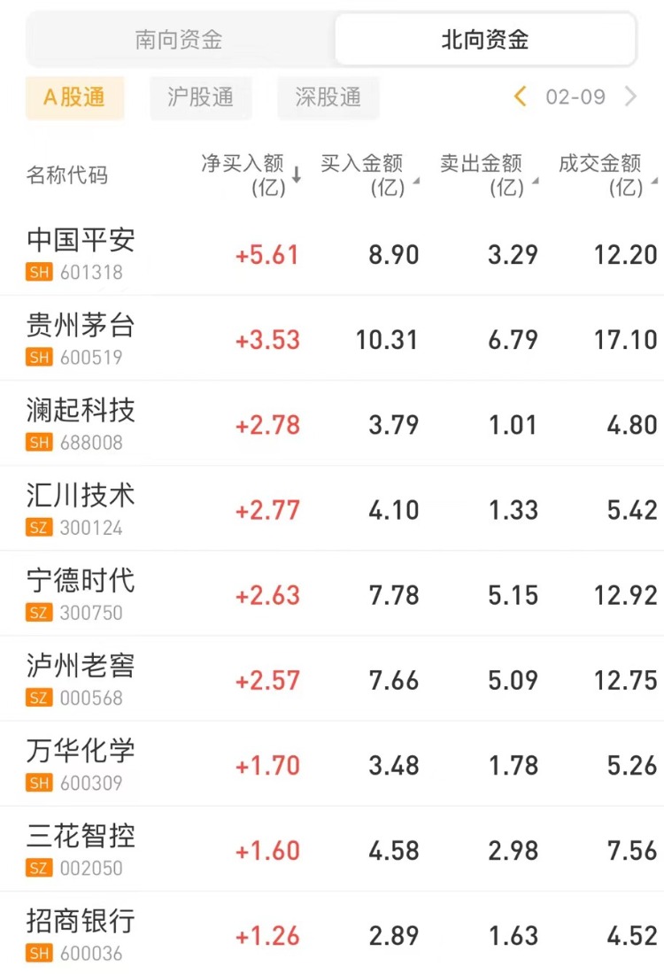 北向资金今日大幅净买入121.01亿元。中国平安、贵州茅台、澜起科技分别获净买入5.61亿元、3.53亿元、2.78亿元。天合光能净卖出额居首,金额为5.12亿元。