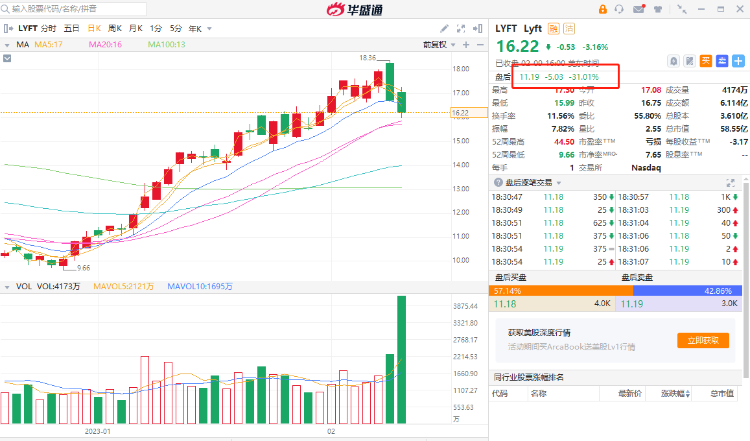 当日,Lyft股价在纳斯达克常规交易中下跌0.53美元,报收于16.22美元,跌幅为3.16%。在随后盘后交易中,Lyft股价再度大幅下跌至11.19美元,跌幅为31.01%。过去52周,Lyft的最高价为45.65美元,最低价为9.66美元。