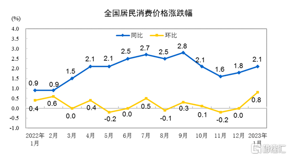 1月份,受春节效应和疫情防控政策优化调整等因素影响,居民消费价格有所上涨。