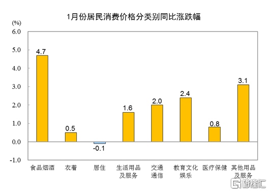 从环比看,其中食品烟酒类价格同比上涨4.7%,影响CPI(居民消费价格指数)上涨约1.33个百分点。