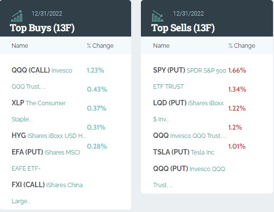 从持仓比例变化来看,前五大买入标的分别是:纳指100ETF看涨期权、SPDR日常消费品精选行业指数ETF(XLP.US)、iShares iBoxx高收益公司债券指数ETF(HYG.US)、iShares MSCI欧澳远东指数ETF看跌期权(EFA.PUT.US)、iShares中国大盘股ETF看涨期权(FXI.CALL.US)。