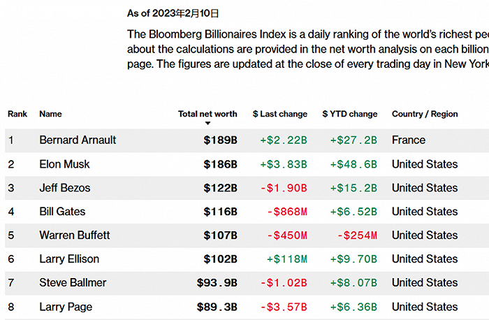 据彭博社亿万富豪榜,截至2月11日,马斯克身价1790亿美元,与首位的贝尔纳·阿尔诺(Bernard Arnault)仅相差60亿美元。