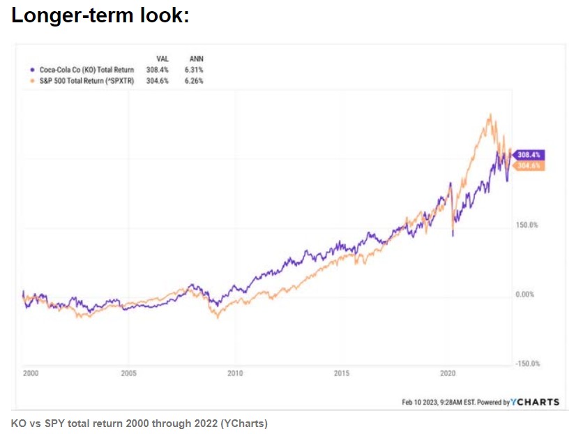 可口可乐的股价曾在1998年7月达到了历史高点,当时正值LongTerm Capital Management爆发危机之前,时任美联储主席格林斯潘不得不招募银行为华尔街企业纾困。在1998年7月下旬,该股的交易价格一直在47-48美元之间,直到2019年才再创新高。