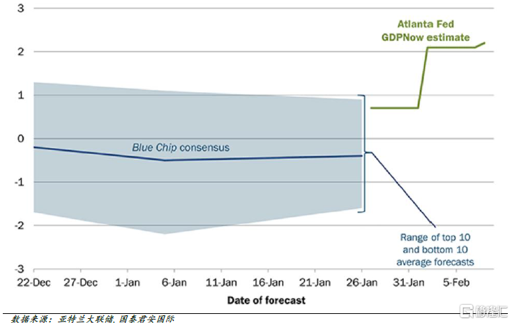 图 4:GDPNow对美国第一季度GDP预测显著高于市场分析师