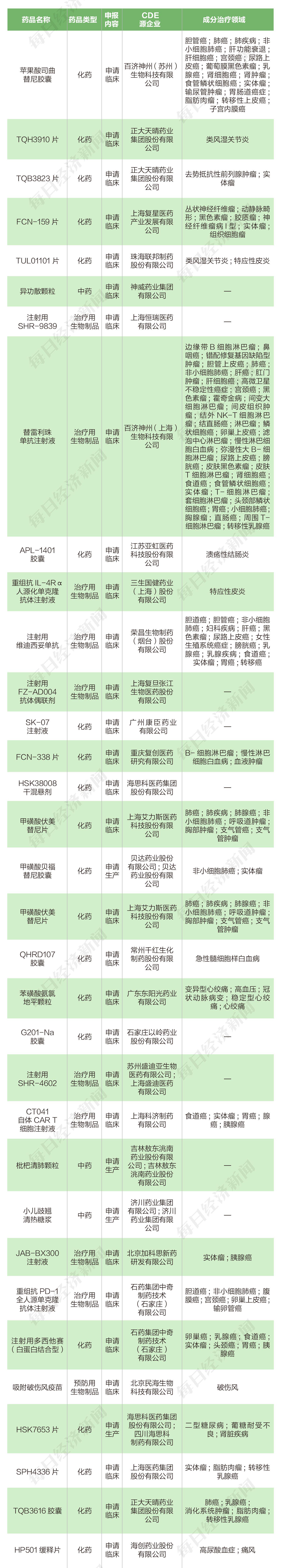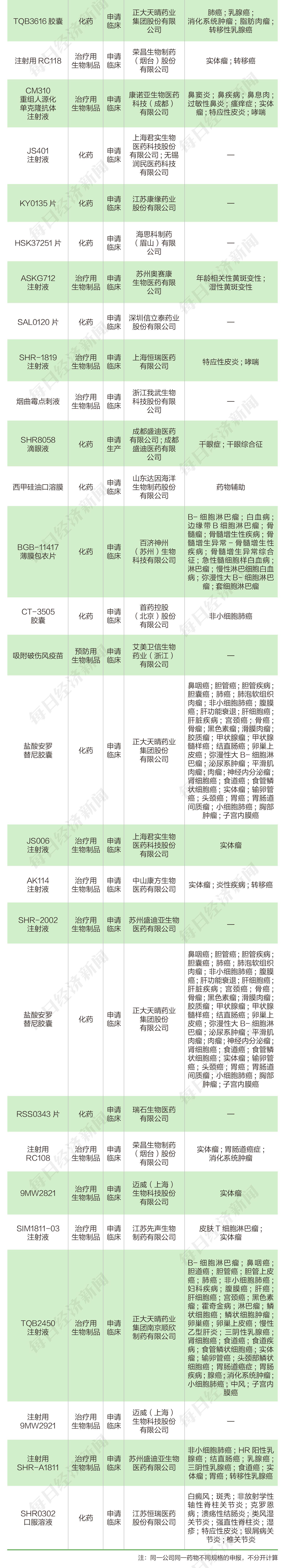 海思科、贝达药业各提交2个生产申请;恒瑞医药、吉林敖东、济川药业各提交1个生产申请。