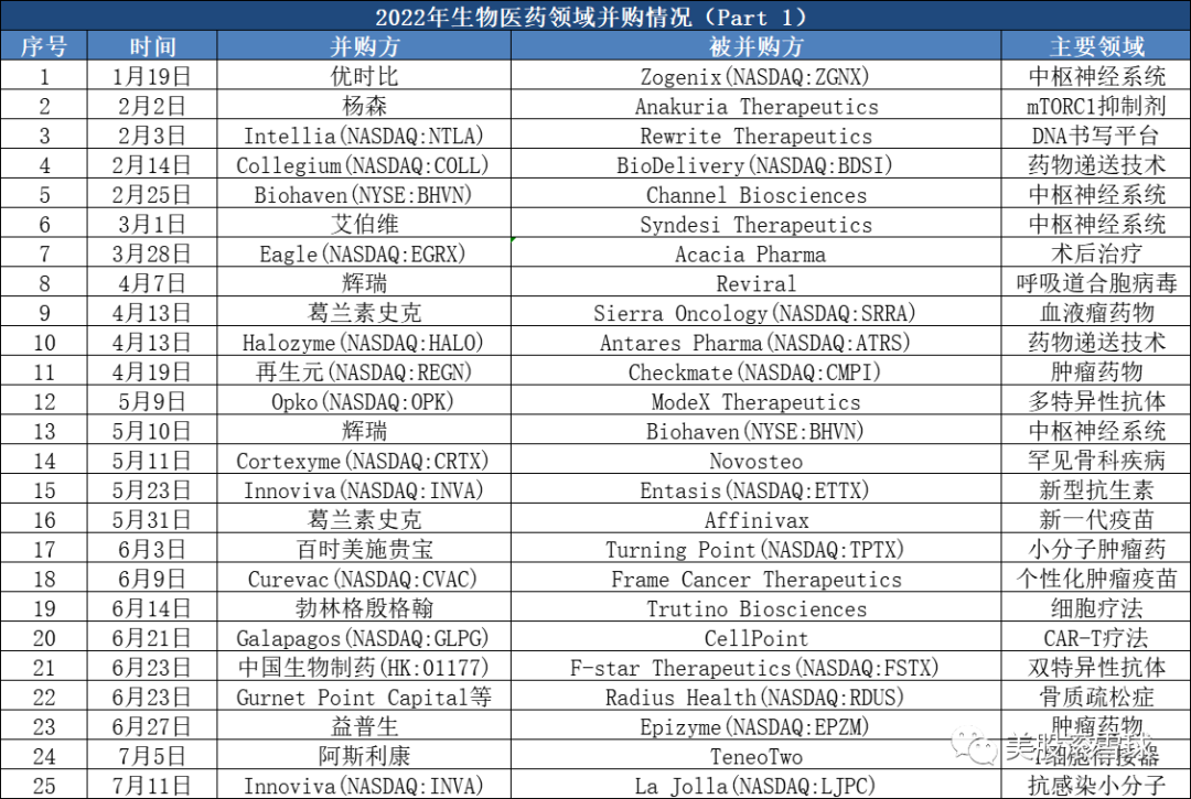 此外,吉利德、GSK、阿斯利康、艾伯维等药企均在2022年进行了2次并购。