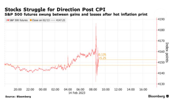 在美国一月CPI数据公布后,美国三大股指期货波动加剧。 数据显示通胀同比增速有所回落,但是高于预期,这增加了市场对美联储未来政策判断难度。