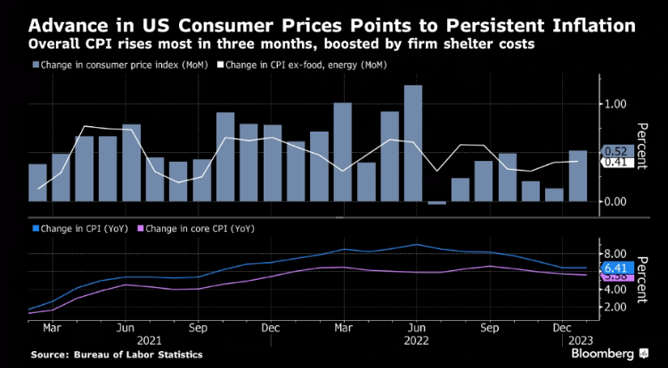 美国1月份通胀率环比上升0.5%,高于之前0.4%的预期,较上年同期上升6.4%,市场之前预期同比增速为6.2%。高于预期的数据显示:美联储未必会像市场预期的那样鸽派。