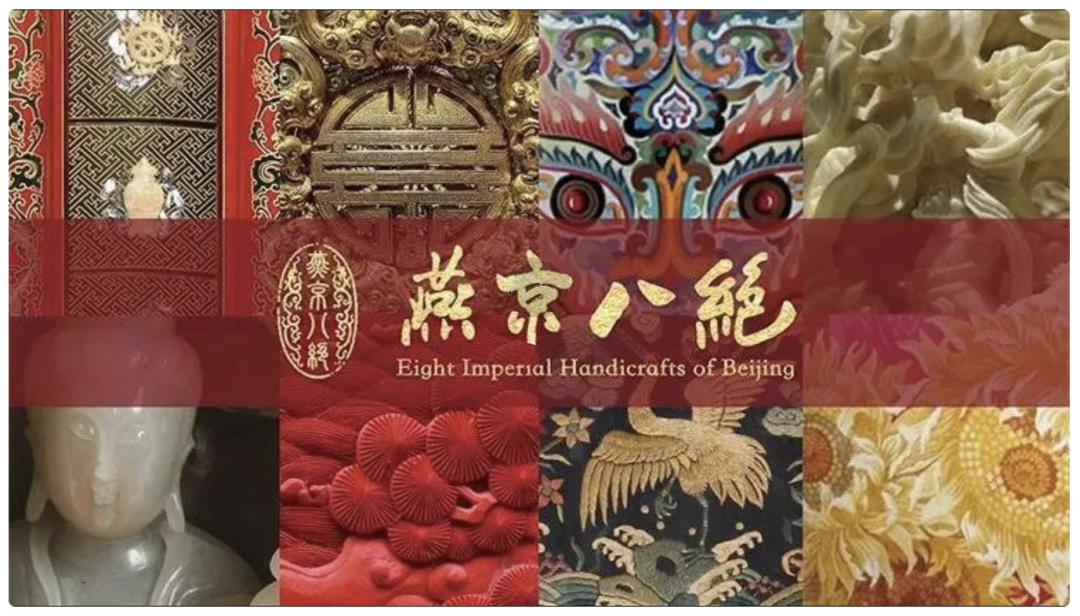 “燕京八绝”为清宫造办处工匠散落民间的八大绝技,以金漆镶嵌、花丝镶嵌、景泰蓝、牙雕、玉雕、雕漆、京绣、宫毯为代表,汲取了宫廷艺术与民间工艺的精华,开创了中华传统工艺的新高峰。