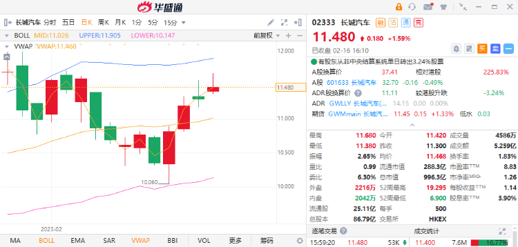 - 花旗表示,长城管理层发布对2023年展望,销售目标160万辆,新能源汽车渗透率多于40%,出口销售组合占逾15%。另今年有多于10款新新能源汽车型号将推出市场。该行予长城汽车“买入”评级,目标价16港元。