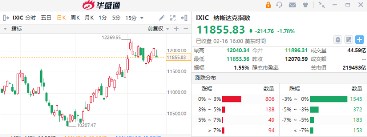 随着美联储加息预期在强劲经济数据支撑下持续升温,此前几日尚能勉力支撑的股市多头,周四也终于无力抵抗。美国三大股指周四全线走软,标普500指数下跌57.19点,至4090.41点,跌幅1.4%。道指下跌431.20点,至33696.85点,跌幅1.3%;以科技股为主的纳指下跌214.76点,至11855.83点,跌幅1.8%。