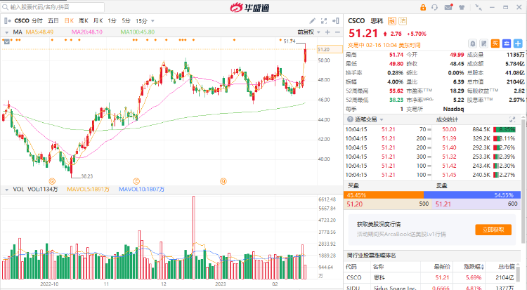 思科Q2营收为136亿美元,同比增长7%,超出市场预期的134.3亿美元;思科还对于今年给出了远超分析师预期的业绩指引。该公司预计2023财年收入将增长9%至10.5%,分析师预期增速为5.7%,公司先前预计将增长4.5%-6.5%,预计第三财季收入将增长11%-13%,分析师预期的增长为5.8%。