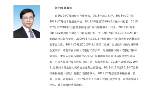 《行长要览》查阅官网发现,截至发稿前,刘连舸简历还在该行董事会成员一栏。
