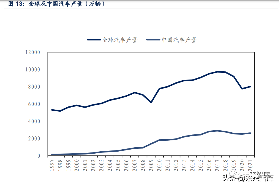 在汽车领域,POE 需求有望借助汽车产销恢复和轻量化趋势而得到恢复和发展。中国汽车 行业轻量化趋势越来越明显,POE 产品在该领域将有广阔的发展前景。据新思界网,POE 应 用至汽车零部件的制造,可以提升相关部件的性能、降低重量,同时还可以节约成本。中 国汽车制造、塑料制造的生产体量较大,但对 POE 应用率仍然较低。目前国外汽车保险杠 领域的共混改性已大部分采用 POE 弹性体,而国内仅有 20%左右的保险杠材料采用 POE 弹 性体。从全球及中国汽车产量来看,芯片问题制约着近几年汽车产业的发展。汽车芯片短缺出现 的原因包括,(1)车企因疫情减少订单后,汽车芯片生产企业将产能挪作他用;(2)车用 半导体大多采用 8 英寸晶圆制造,而近些年主要半导体代工厂着重发力 12 英寸晶圆;(3) 消费电子芯片需求大幅上涨,挤压汽车芯片空间;(4)国际政治、贸易摩擦。国家对芯片 问题越来越重视,“十四五”国家专项规划中纳入 5G、集成电路等领域,随着政策和产业 上的不断攻坚克难,未来芯片短缺问题解决后,汽车产销有望得到恢复,POE 在汽车领域 的需求也有望得到恢复和提升。