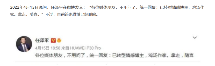 2022年初,他因为发表雷人雷语微博被禁,于是转型情感博主,鸡汤作家。