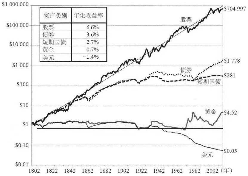 拿一张过去200年股票收益率,债券收益率和黄金收益率的走势图。