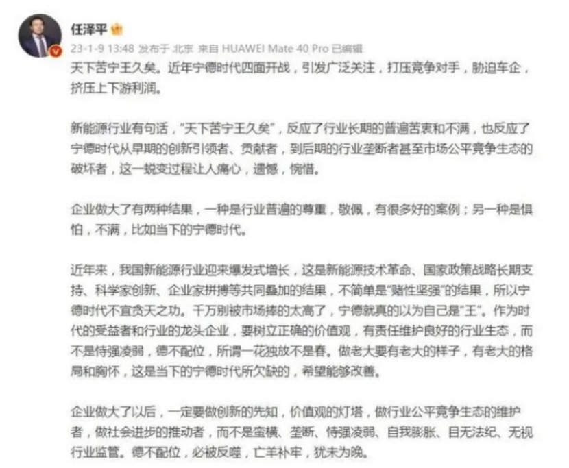 可能每次雷人雷语都只是为了更加吸引眼球,获取流量,于是后面他又高调发声:现在不买新能源相当于20年前不买房。他说不要与趋势为敌,要顺势而为,因为每个人都是时代的产物。
