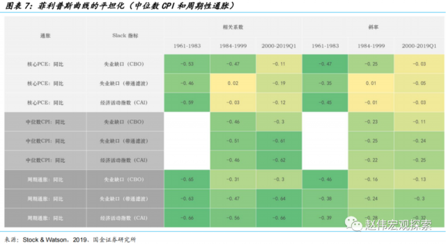 后疫情时代,劳动短缺是否会,以及在多大程度上转化为通胀,仍需回答“菲利普斯曲线”是平坦的,还是向下倾斜的?经验上,从上世纪60年代到本世纪初,所有反映缺口的指标与核心PCE通胀的负相关性都明显下降,即“菲利普斯曲线”明显平坦化,2000-2019年基本呈水平状。但是,如果只考虑价格中的趋势项和周期属性更明显的部分,会发现它们与供求缺口的负相关性并未下降,“菲利普斯曲线”依然向下倾斜。