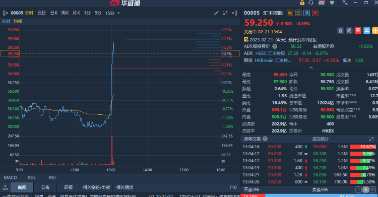 汇丰控股午后直线拉升一度涨超1%,此前跌超1%。第四季度经调整除税前利润68.3亿美元,同比增长92%。