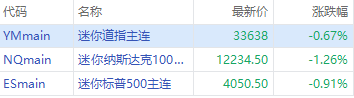 华盛资讯2月21日消息,美股盘前,三大期指走低,截至发稿,纳指100指数期货 $MNQmain 跌1.26%,标普500指数期货 $ESmain 跌0.91%,道指期货 $YMmain 跌0.67%。美股市场期货交易功能已上线>>