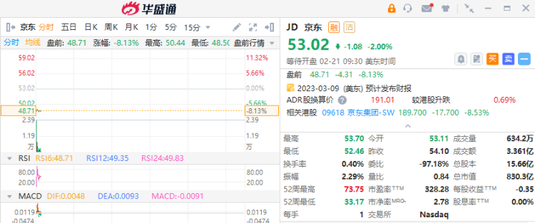 热门中概股美股盘前走低,京东跌超8%,拼多多跌超4%,阿里巴巴跌超3%,爱奇艺跌超2%,蔚来、百度跌超1%。