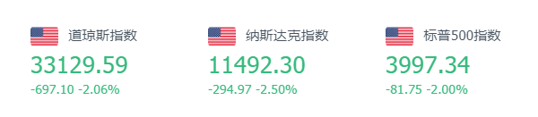 2月21日美股低开低走,三大指数集体收跌,纳指跌2.5%,道指跌2.06%,重挫近700点,标普500指数跌2%,自1月20日以来首次失守4000点整数位,与道指均创去年12月15日以来最差单日表现。标普非必需消费品板块、罗素小盘股和芯片股跌约3%,今年指引不佳的家得宝跌7%施压道指。大型科技股集体下跌,特斯拉跌超5%,奈飞跌约3%,苹果、亚马逊、谷歌、微软跌超2%。中概电商股股价均大跌,京东跌超11%,拼多多跌超9%,知乎跌超8%,阿里巴巴跌超4%。