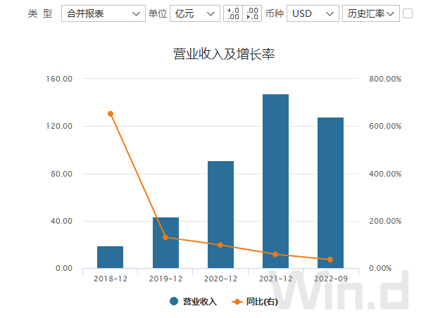 同时从净利润来看,最近几年净利润波动明显,2020年净利润超过75亿美元,2021年则亏损5.58亿美元,今年前三季度净利润再度回升至10亿美元。
