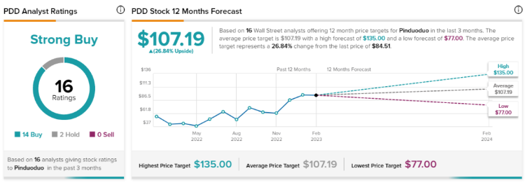招银国际在最新研报中表示,得益于用户粘性的增强,预计拼多多将在2023年保持相对于同业更具韧性的GMV和收入增长。该行对公司核心主站的利润增长及海外扩张前景持乐观态度,同时,新业务多多买菜、海外Temu业务在效率提升上的进展将会持续,予以公司目标价116.9美元,维持“买入”评级。