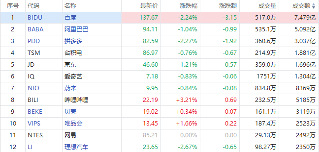 华盛资讯2月22日讯,美股热门中概股盘初跳水,中国金龙组合ETF $PGJ 转跌0.24%,盘初一度涨超2%。截至发稿,百度跌超2%,此前一度涨超6%;爱奇艺现跌0.83%,拼多多跌超2%,阿里巴巴、京东跌超1%。