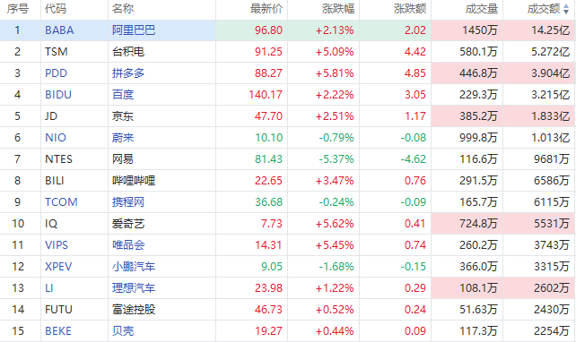 华盛资讯2月23日讯,热门中概股早盘震荡走高,2倍做多中国互联网ETF $CWEB 现涨2.20%,盘初一度涨超6%;截至发稿,拼多多、爱奇艺、唯品会大涨超5%,百度涨超2%;阿里巴巴涨幅缩窄至2%,网易绩后跌超5%。