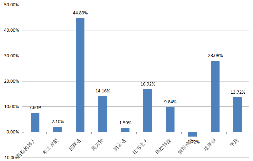 (2)行业毛利率普遍下滑,而新松机器人行业垫底