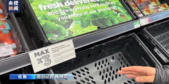 据央视新闻24日报道,以央视记者所在的英国伦敦一家很普通的超市为例,货架上就清晰标识了限购的数量,在这个标识上可以看到每个顾客只能限购3份西红柿。
