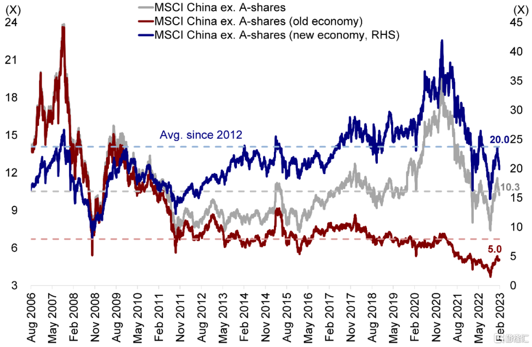 图表:市场整体估值回落,老经济板块估值仍然较低
