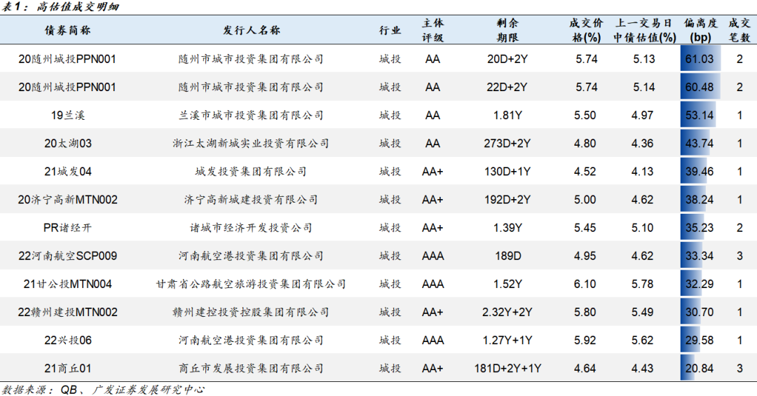 选取的个券是剩余期限在1个月以上,估值偏离20bp以上。