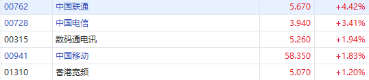 电讯设备:中兴通讯、中国通信服务、中国铁塔;