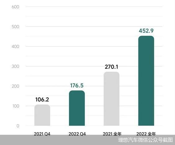 财报显示,去年理想汽车营收452.9亿元,同比增长67.7%。其中,四季度营收176.5亿元,同比增长66.2%,环比增长88.9%,四季度营收占全年营收比例近四成。